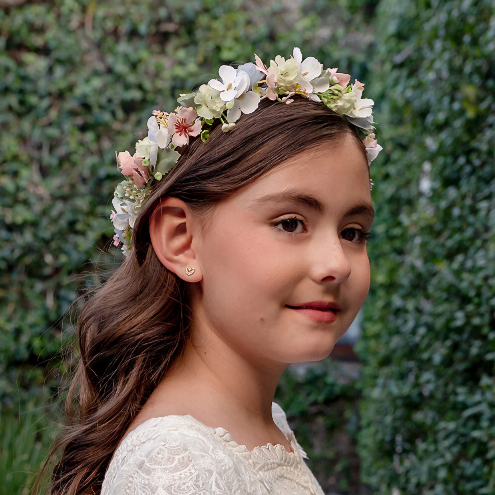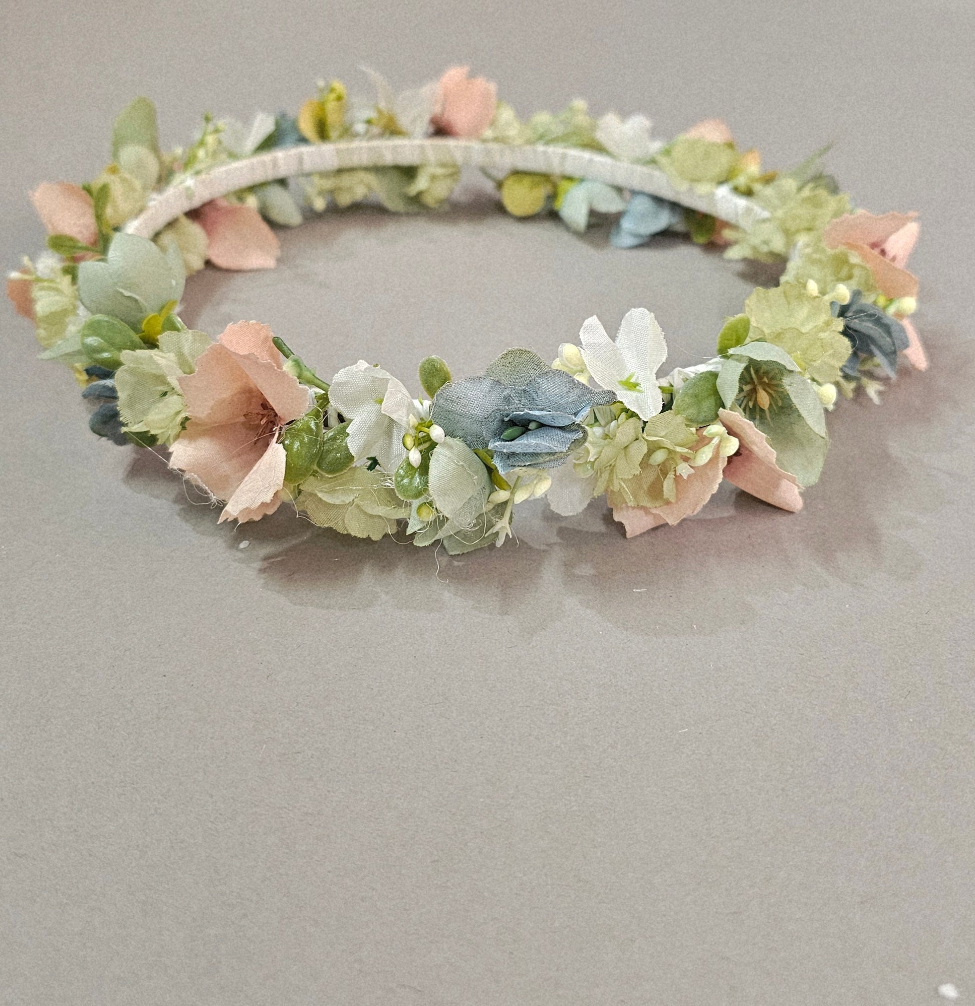 Corona de flores de tela.